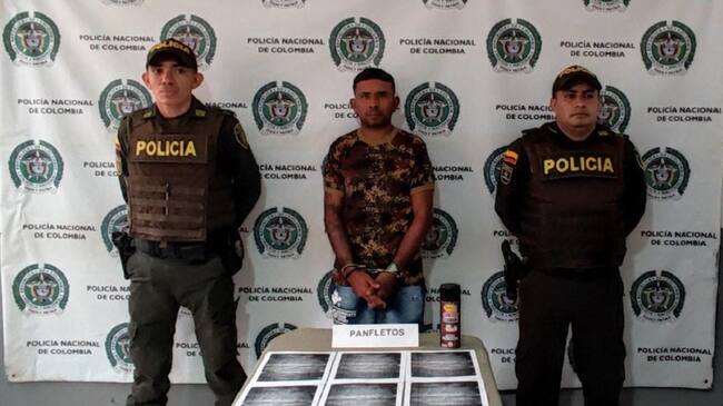 El sujeto fue aprehendido en flagrancia portando un aerosol, 10 panfletos y misivas donde describe acciones criminales alusivas al Grupo Armado Organizado Clan del Golfo.