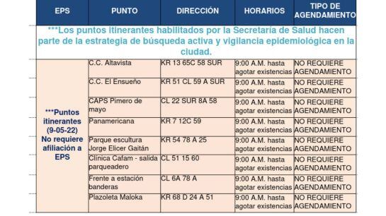 Se debe tener en cuenta que no es necesario agendar con anterioridad o contar con una eps, los únicos requisitos son cumplir con las medidas de bioseguridad y presentar el documento de identidad.