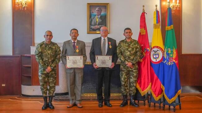 Domingo Chinea, presidente Puerto Santa Marta; y coronel retirado del Ejército Carlos Suárez, vicepresidente Seguridad, fueron condecorados.