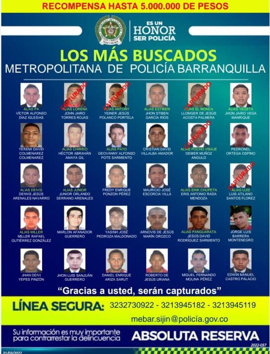 La Policía Metropolitana de Barranquilla está ofreciendo $50 millones de pesos de recompensa por la persona más buscada en la ciudad.