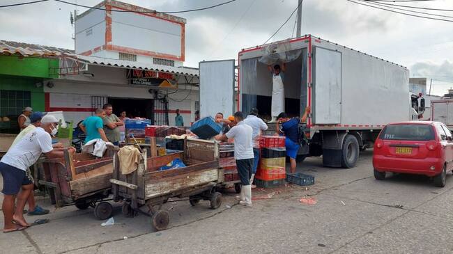 Desde este martes llegó un gran volumen de carga de alimentos al mercado de Barranquilla, pero aún permanece la baja presencia de compradores.