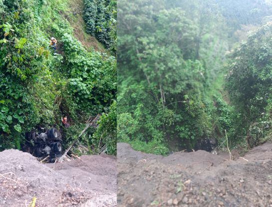 Tractocamión rueda por un abismo en la vía Anserma - Guática / Defensa Civil de Anserma