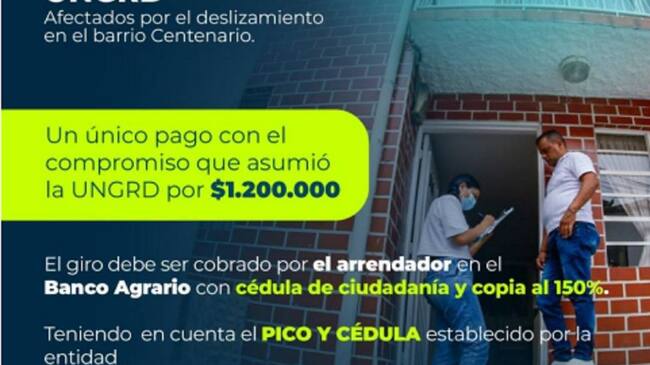 Indicaron que, desde el Gobierno Nacional entregan a los damnificados un pago único de 1.200.000 por concepto de subsidio de arrendamiento.