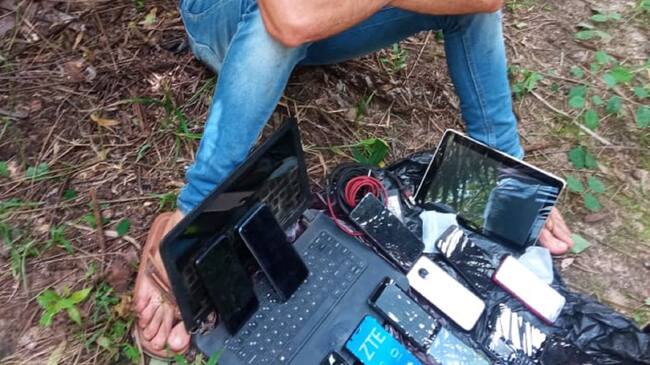 Al hombre le fueron hallados varios equipos móviles, un computador y tables, así como elementos de ropa. En video reconoció el robo y agradeció al grupo armado por respetarle la vida.