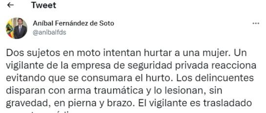 Tuit del secretario de Seguridad de Bogotá / vía Twitter