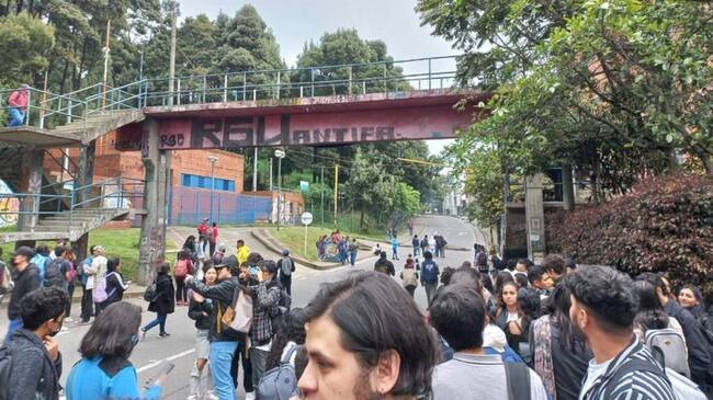 En la tarde del 24 de mayo en Bogotá alrededor de 50 estudiantes de la Universidad Distrital realizaron un plantón en inmediaciones a la sede La Macarena en la Avenida Circunvalar con Calle 28.