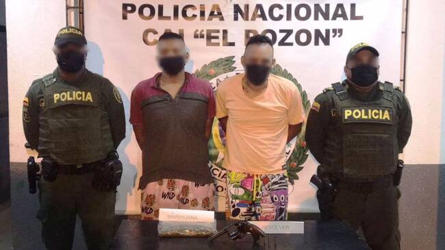 Los detenidos iban a bordo de una motocicleta por el sector Las Flores, del barrio El Pozón, con un arma de fuego de alta letalidad(Policía Metropolitana de Cartagena)