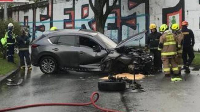 Aparatoso accidente de tránsito se registró en la Avenida Centenario de Manizales. Crédito: Bomberos Manizales.