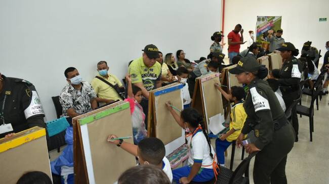 Esta actividad artística, bautizada como ‘Los hijos de los policías le pintan a Colombia’, se llevó a cabo en coordinación con el Área de Infancia y Adolescencia de la Dirección de Protección y Servicios Especiales (DIPRO), que se encargó de suministrar los kits para el desarrollo del taller y de acompañar en todo momento a los hijos de los policías que vivieron una experiencia inolvidable.