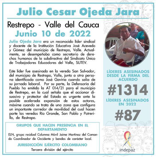 Docente Julio Cesar Ojeda (q.e.p.d) / Indepaz