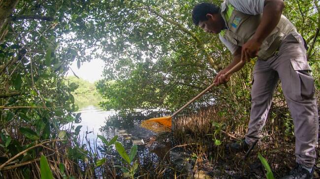 En la jornada de limpieza participan la Organización Comunitaria Bosques de Manglar, vigías ambientales, Gerencia de Espacio Público, FGS, consorcio de aseo Pacaribe, Guardia Ambiental, los grupos ambientales Verde Calicanto y Tierra Fértil.