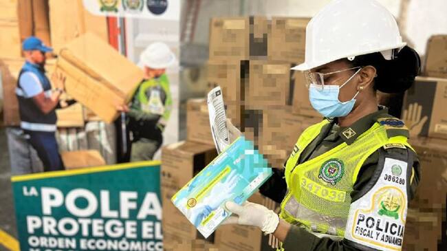 En las últimas horas, tras la inspección realizada por parte de los funcionarios de la POLFA y la DIAN a las mercancías de origen extranjero a la salida del muelle marítimo de la ciudad de Cartagena, se aprehendió un contenedor con 31.050 pares de guantes de Nitrilo; los cuales pretendían ingresar al territorio aduanero nacional sin el lleno de los requisitos exigidos por la regulación aduanera vigente.
