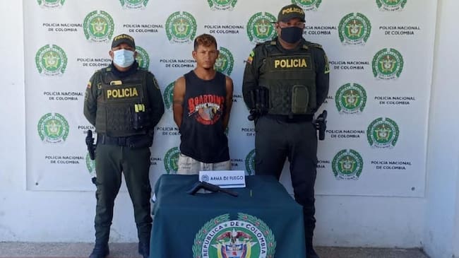 El hombre fue identificado por las autoridades como Carlos Enrique Caamaño Cadrasco, de 29 años, más conocido en el bajo mundo con el alias de ‘Carlitos’ y según el reporte policial este sujeto segundos antes de su captura se desplazaba por una de las calles del mencionado barrio y cuando se percató de la presencia de los miembros de una patrulla se intentó dar a la huida. Sin embargo, los uniformados lograron echarle mano y al someterlo a una requisa se le habría encontrado en el bolsillo de uno de los pantalones un arma de fuego de fabricación artesanal la cual estaba cargada con una bala calibre 38 milímetros.