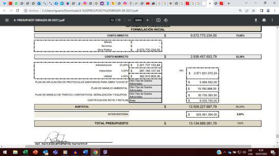 Hasta el momento se ha presentado un proponente a la licitación pública por $13.134.689.281,79, de los cuales $625.461.394,00 son para interventoría.
