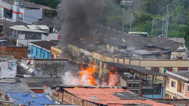 Incendio registrado en el sector de La Galería de Manizales / Imagen suministrada