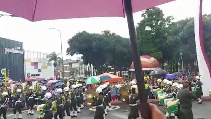Pese a la lluvia, bumangueses salieron a disfrutar de un corto desfile militar en el parque Centenario.