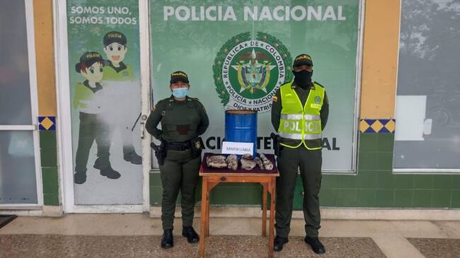 Tras los operativos, se halló un barril de grasa encontrado en su interior al menos nueve paquetes rectangulares cubiertos con plástico trasparente y engrasados, que a su vez contenía una sustancia vegetal de color verde, con olor y características similares a la marihuana, avaluados en más de 3 millones de pesos.