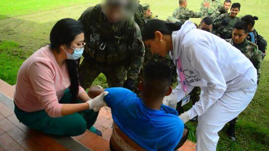 En el procedimiento alias ‘Káiser’ resultó herido, por lo que fue auxiliado por los enfermeros de combate que le brindaron la atención primaria. / Ejército Nacional
