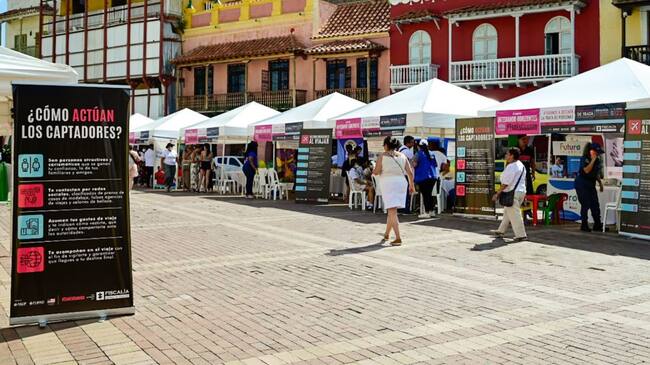 La Fiscalía General de la Nación, con el apoyo de la Fundación Panamericana de Desarrollo, llegó hasta la Plaza de los Coches, en Cartagena de Indias, para ofrecer a los ciudadanos la feria de servicios contra la trata de personas y la explotación sexual.