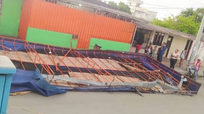 Los fuertes vientos provocaron que la estructura de una carpa en un establecimiento comercial del barrio Hipódromo de Soledad, se viniera abajo