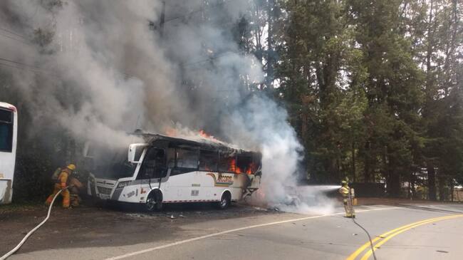 “El vehículo al parecer, perdió el control y colisionó en la parte trasera contra el vehículo de transporte público que estaba estacionado. Inicialmente se incinera el vehículo particular y la misma conflagración alcanza a llegar al carro de transporte público”, relató el Teniente coronel Fabio Sierra, comandante de policía de carreteras de Antioquia.