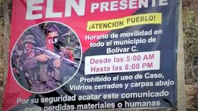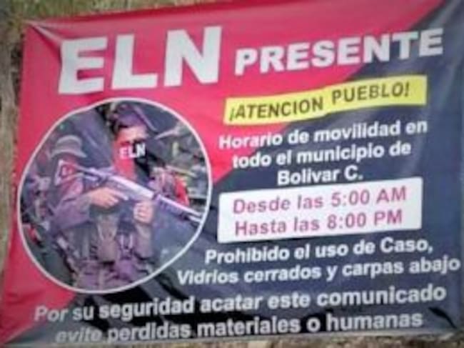 En medio de las disputas por el control territorial, el Ejército de Liberación Nacional, ELN, anunció horarios para que los ciudadanos puedan circular en el municipio de Bolívar, en el sur del Cauca.