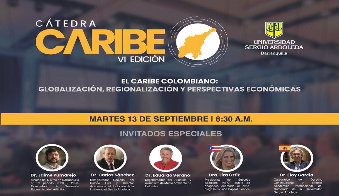 El 13 de septiembre, desde las 8:30 de la mañana, la Universidad Sergio Arboleda en su sede de Barranquilla dio inicio a la VI Cátedra Caribe. Un evento de proyección internacional en el que se reflexionó sobre la dimensión regional y global de la región, en un formato en el que participaron expertos nacionales e internacionales.