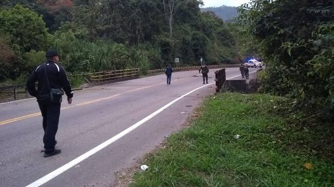 Las autoridades en Norte de Santander atribuyeron al Eln, los explosivos encontrados en el puente Palermo en la vía que comunica a Cúcuta con Pamplona, en el hecho dos hombres murieron al activar uno de los explosivos.