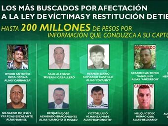 También las autoridades buscan a Omar Alberto Moreno, alias Codazzi, en la zona del Caribe; a los presuntos integrantes de la guerrilla de las Farc, alias Carranza y alias Daniel, y a otros cuatro integrantes: Saúl Alfonso Severini Caballero, Hernán Darío Camargo Castillo, alias Giovanni, Víctor Julio Almanza Mape, alias Ramoncito, y a alias Juancho o "Misael", por quienes ofrecen una recompensa de hasta de 200 millones de pesos.