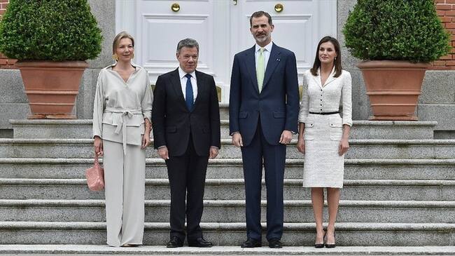 Ayer lunes 14 de mayo, el presidente Juan Manuel Santos y su esposa Maria Clemencia se despidieron de España y de su gira por Europa, por lo alto, con encuentros con la realeza. Almorzaron en la residencia de los reyes de España, Felipe VI y Letizia, en el Palacio de la Zarzuela.