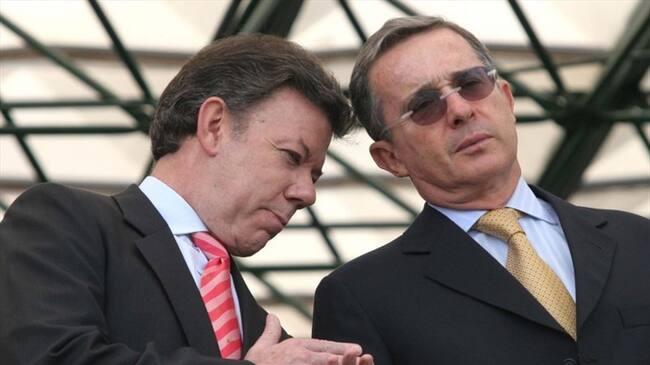 Juan Manuel Santos, presidente de la República y Álvaro Uribe, senador del Centro Democrático. Foto: Colprensa(Thot)