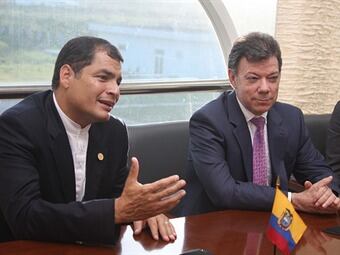 Posteriormente, el Presidente Santos se desplazará al Palacio de Carondelet, sede de la Presidencia de la República de Ecuador, para dialogar con su homólogo Rafael Correa. En esta reunión, los Mandatarios abordarán temas de la agenda bilateral como la seguridad en la zona de frontera, el comercio, el tránsito libre, el transporte terrestre, interconexión eléctrica y cooperación energética, el comercio, migrantes e integración regional.