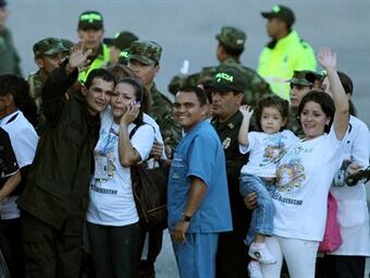 Esta noche los liberados llegaron a la base militar de Catam y fueron trasladados al Hospital de la Policía, donde se reunieron con sus familliares y recibieron atención médica.