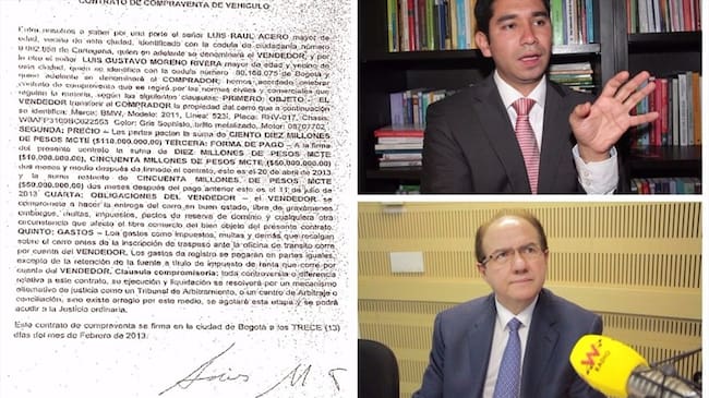 Por otra parte, se encuentra el contrato de compraventa del BMW que Leonidas Bustos le vendió a Gustavo Moreno, quien había asegurado que dicho carro se lo había obsequiado.