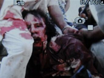 La AFP obtuvo y difundió una presunta foto de Gadafi herido tras su captura en Sirte. La foto fue tomada con un teléfono celular. En la misma se puede ver a Gadafi con el rostro y la ropa cubiertos de sangre.