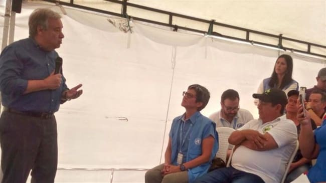 Guterres verificó personalmente los avances del proceso de implementación del acuerdo de paz con las Farc y señaló: “Esta es una visita de solidaridad y compromiso. Solidaridad con el pueblo colombiano y compromiso con la construcción de la paz”
