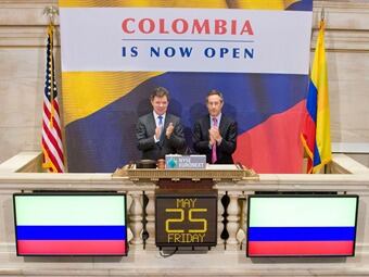 Bajo un aviso que decía Colombia is now open, (Colombia está abierta) el Jefe de Estado abrió la jornada del New York Stock Exchange (NYSE-EURONEXT), luego de la reunión que tuvo a primera hora con un grupo de inversionistas en las instalaciones de la Bolsa.