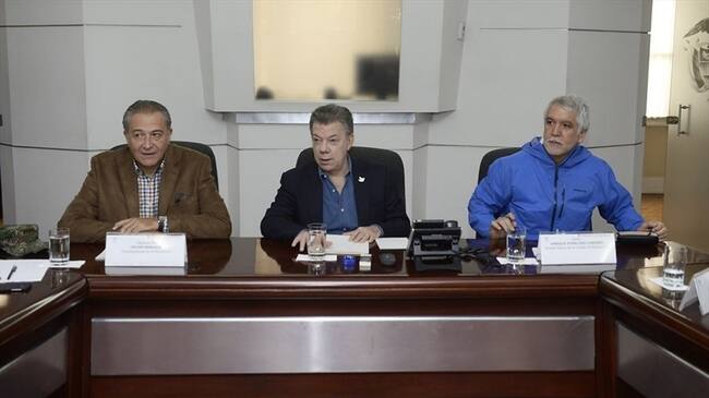 El presidente Juan Manuel Santos (c) entrega balance del consejo de seguridad tras atentado en Andino.. Foto: Colprensa(Thot)