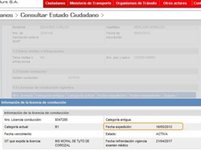 Según el diario El Heraldo, en la página web del RUNT "se consultó la cédula de ciudadanía del senador y se corroboró que ayer, 16 de mayo de 2012 le fue expedida una licencia de conducción tipo B1 a Merlano".
