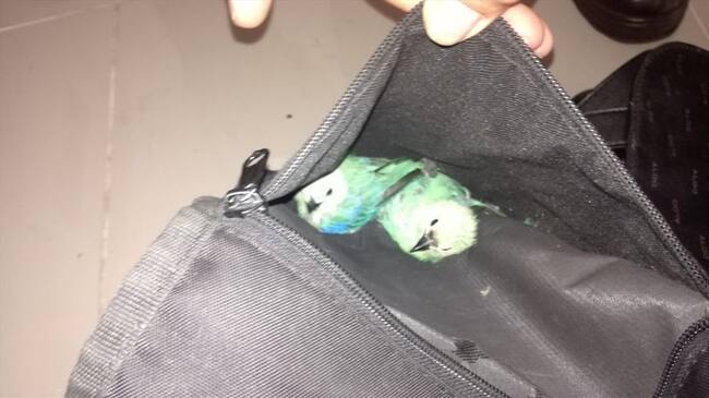 Estas especies estaban siendo transportadas por dos jóvenes, que llevaba la iguana adherida al cuerpo y camuflada en una chaqueta. Mientras las aves estaban presionadas al interior de uno de los bolsillos de una maleta sin ventilación.