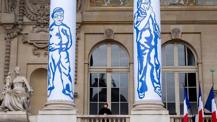 El Grand Palais de París ha invitado a la artista colombiana Diana Velásquez a presentar su obra “La espera”, compuesta de 10 dibujos a escala de cinco metros de alto por dos de ancho para adaptarse a la medida de las columnas de la fachada del museo.