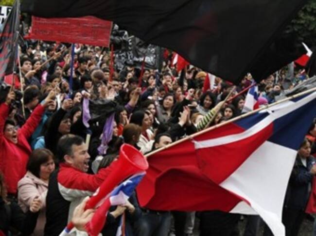 Organizaciones sociales protestaron en las afueras del palacio presidencial chileno contra la presencia del rey Juan Carlos de España, que realiza una visita oficial de dos días al país.