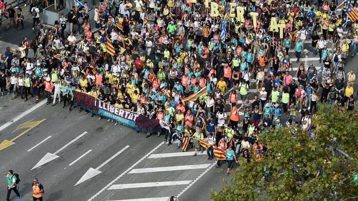 Miles de personas llegaron hoy a Barcelona en cinco columnas desde varias parte de Cataluña para unirse en una gran manifestación de repulsa de la sentencia del Tribunal Supremo español, que el lunes condenó a penas de entre 9 y 13 años prisión a los dirigentes procesados por organizar un referéndum ilegal de "autodeterminación" en 2017.