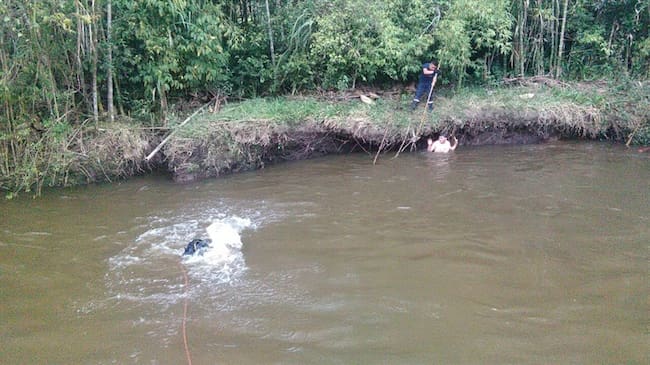 La pequeña cayó a un pozo del río La Chorrera en la vereda Quintero, cuando jugaba con cuatro compañeras, todas menores de edad. Foto: Bomberos Timbío(Thot)