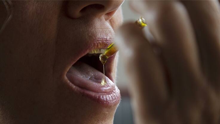 Nosotros le suministramos unas gotas sublinguales de aceite de cannabis.