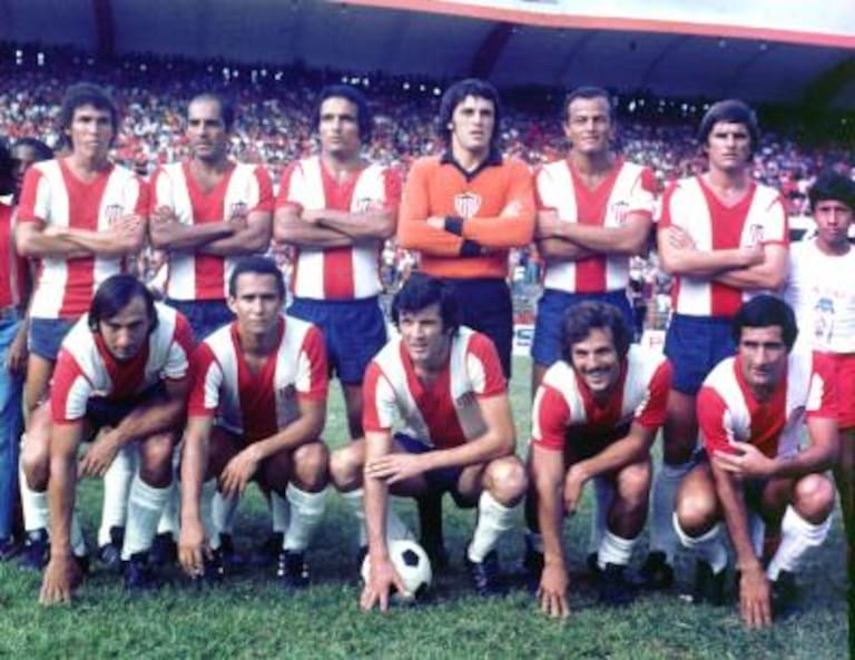 SANTA FE 1975DE PIE IZD-DER: Alonso "Cachaco" Rodríguez,Luis Leonardo Recúpero,Rafael Pacheco,Luis Gerónimo López,Bernardo Chía,José Antonio "Caneca" Tébez.ABAJO IZD-DER: Teo Garcia,Juan Carlos Sarnari,Carlos Alberto Pandolfi,Ramiro Viáfara Y Hernando Piñeros.