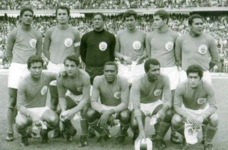 SELECCIÓN DE BRASIL 1970ARRIBA IZQ-DER: Rogeiro, Coutinho, Parreira, Félix, Camargo, Leao, Fontana, Britto, Clodoaldo, Zagallo y ChirolCENTRO MISMO ORDEN: Américo, Rivelino, Carlo Alberto, Baldocchi, Piazza, Everaldo, Paulo César, Tostao, Marco Antonio y AdoABAJO MISMO ORDEN: Edú, Zé María, Dadá Maravilha, Gerson, Roberto Miranda, Jairzinho, Pelé y Nocaute Jack