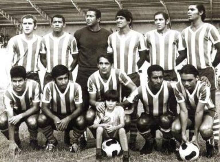 JUNIOR 1972ARRIBA DE IZQ-DER: Eduardo Carillo, Manuel Manjarres, Heriberto Solís, Pedro Vásquez, Toto Rubio y Boricua Zarate. ABAJO MISMO ORDEN: Othon Dacunha, Papo Florez, Tato González, Diablo Caldeira y Julio Olmos