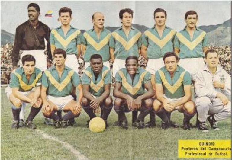 QUINDIO 1966DE PIE IZQ - DERECHA: Sombra Martínez, Conde, Sabino Bartoli, Enrique Frade, Dante Álvarez, Burbano.ABAJO IZQ- DER: Larraz, Pantoja, Edison Angulo, Jorge Gallego, Marcarian y Oviedo.