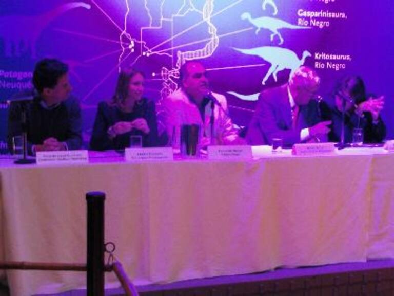 Felipe Santos, Sandra Bessudo, el paleontólogo Fernando Novas, Martin Balza (embajador de Argentina en Colombia) y Ricardo Leyva estuvieron en la inauguración de la sala de dinosaurios argentinos en Era de Dinosaurios.